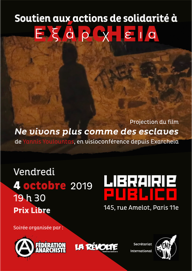 Soirée de soutien au quartier d’Exàrcheia à Athènes, à la librairie Publico (2019)