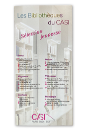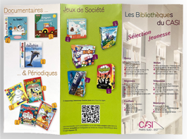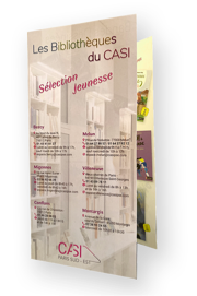 Dépliant 3 volets • Sélection des bibliothèques du CASI pour la jeunesse • Format plié 9,9 x 21 cm (2021)